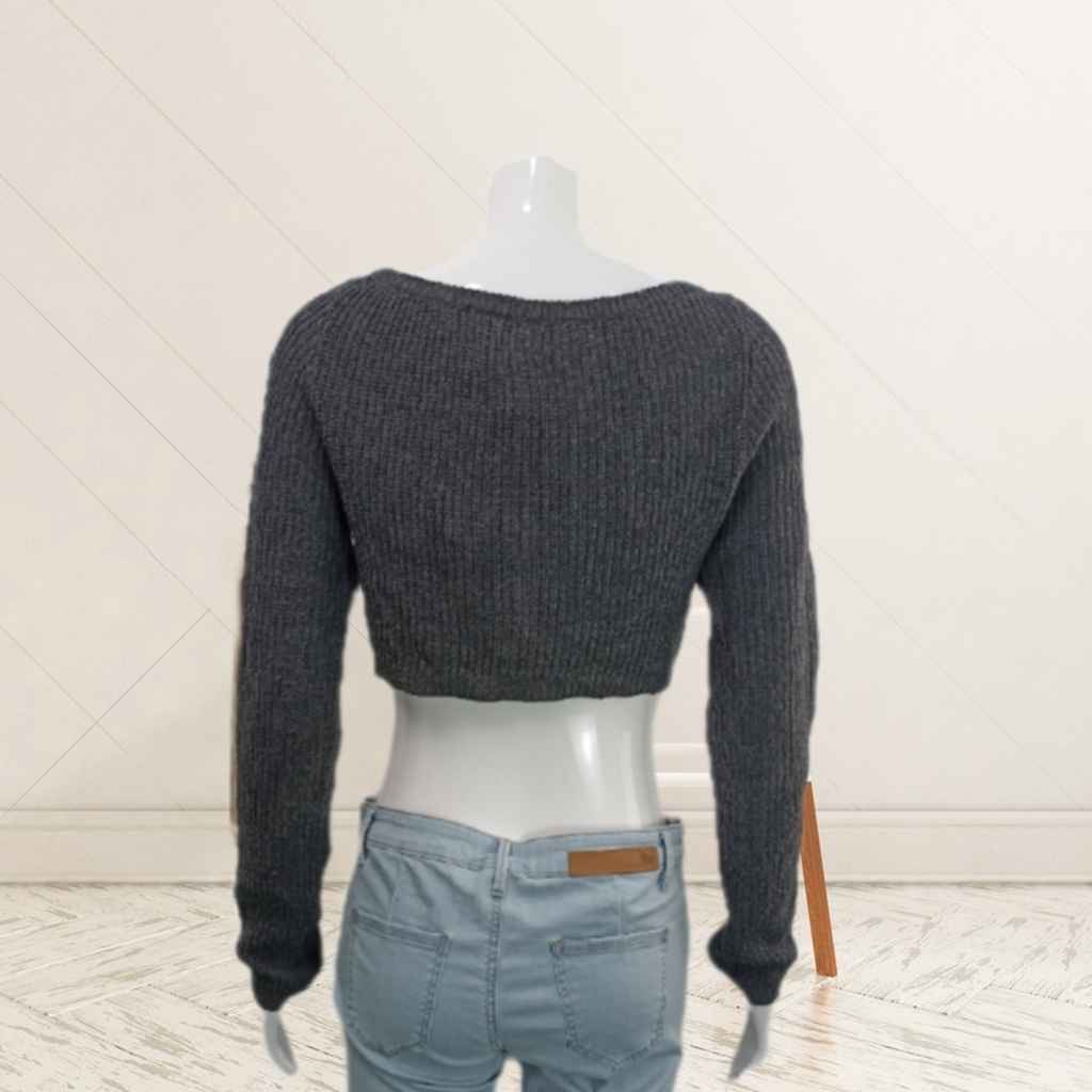 毛针织衫女2023新款长袖外套上衣灰色气质短款欧...